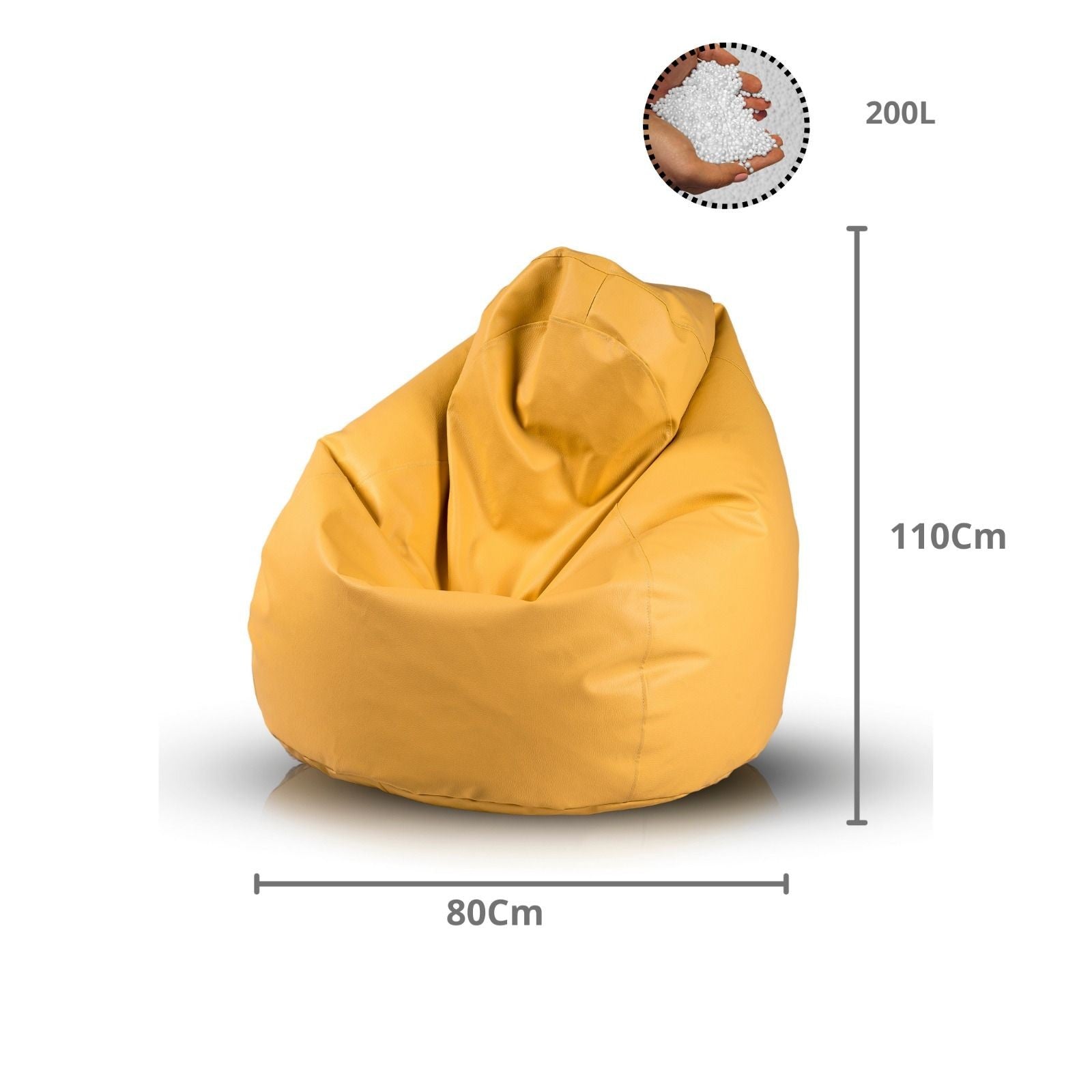 Do wypełnienia foteli stosowany jest granulat polistyrenowy EPS w postaci drobnych, lekkich kuleczek.