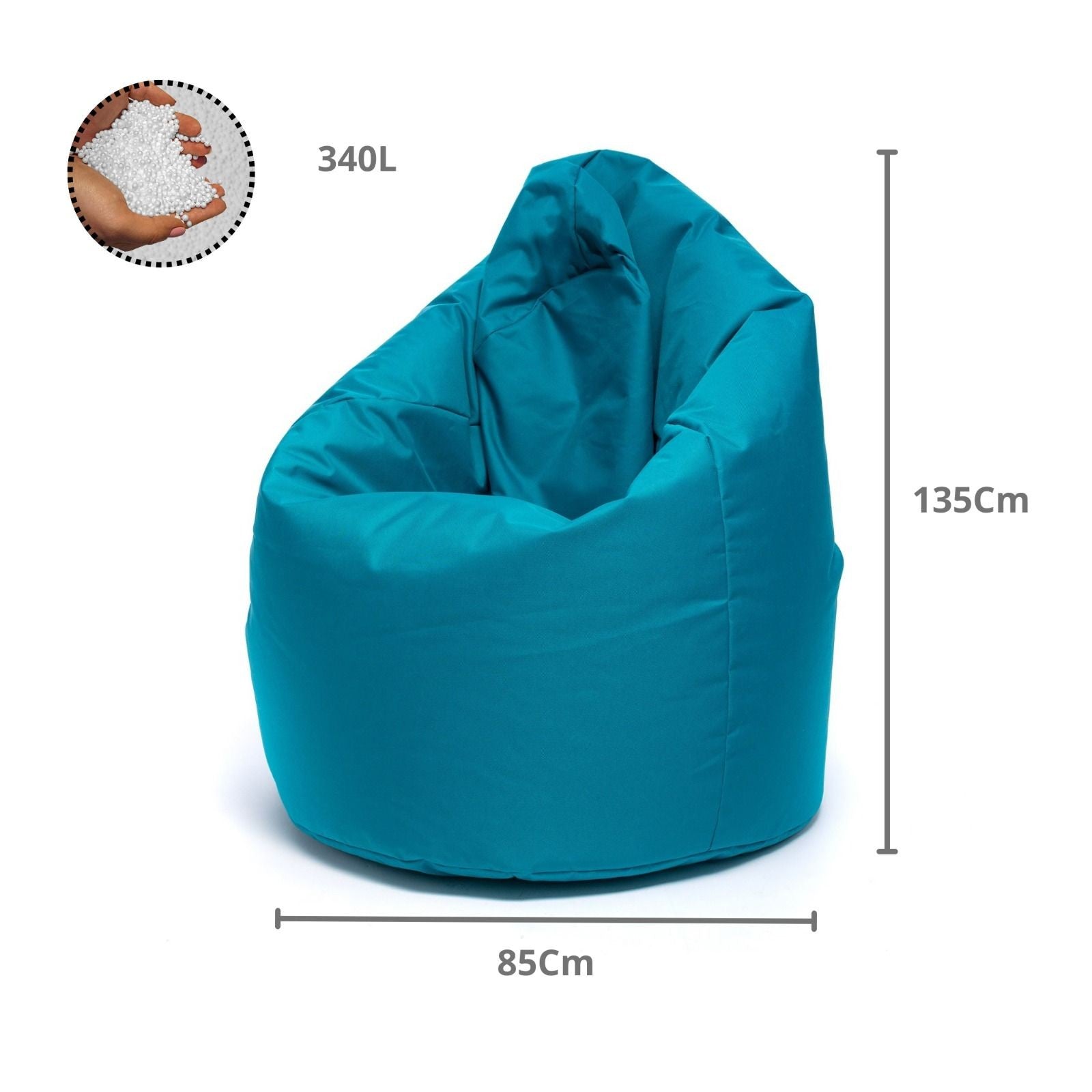 Wypełnienie stanowią kulki granulatu polistyrenowego (EPS), które są lekkie, sprężyste oraz bezpieczne.